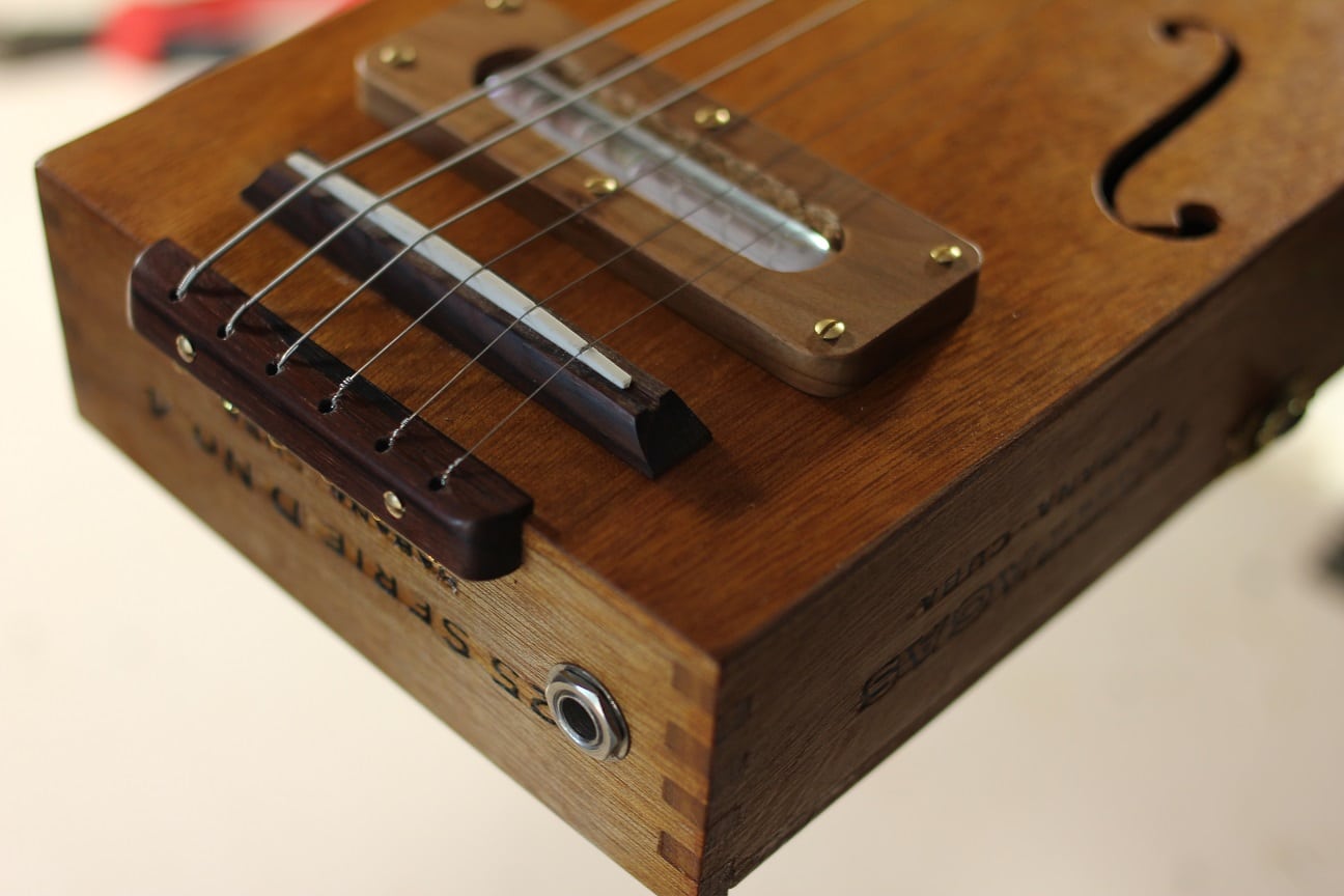 Le terme Cigarbox désigne un ensemble d’instrument qui sont fabriqué avec pour caisse de résonance une boîte à cigare. Cet instrument est né entre les mains des bricoleurs américains du 19e siècle et constituait alors la guitare ou violon du pauvre. Ce sont grâce à ceux-ci que le blues s’est popularisé et sont aujourd’hui encore le symbole d’une musique mélancolique, pleine de souffrance et de tristesse.